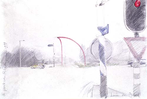When one approaches the Groenekruisweg, passing under the Rotterdam subway viaduct, one of the arches projects itself as a vertical - straight line.